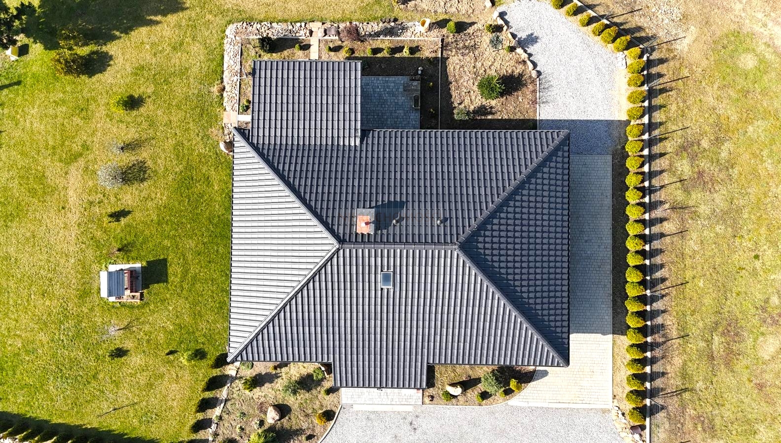 Dach pokryty dachówką ceramiczną,ocieplony.