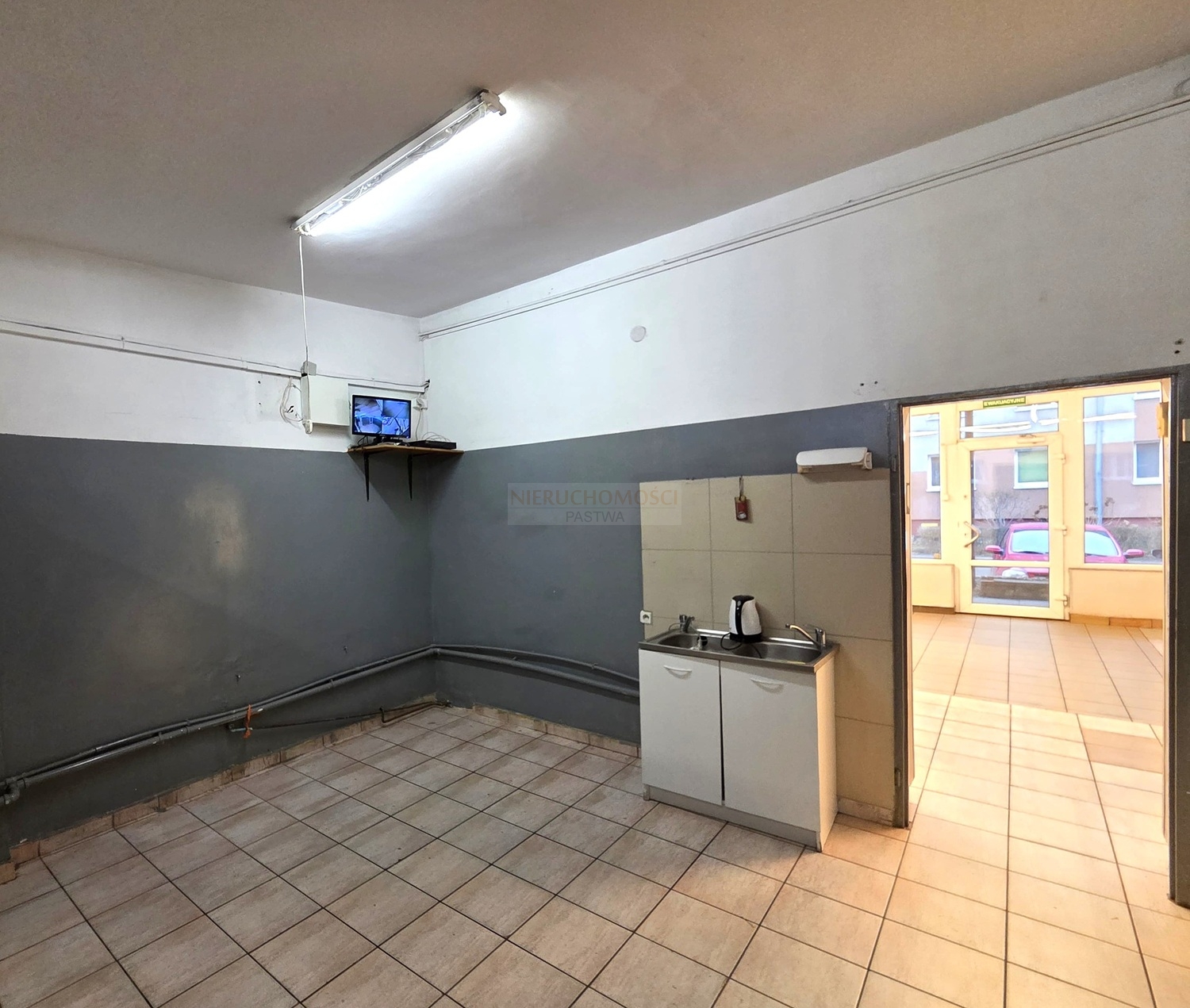 Lokal o łącznej powierzchni użytkowej 68,74 m2. Składa się z przestronnej sali głównej oraz dużego zaplecza, biura i łazienki z wc.